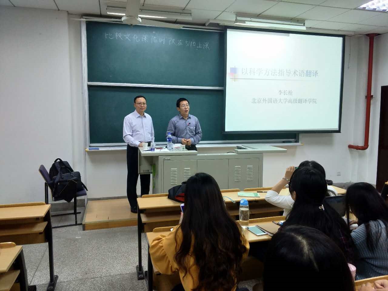 2017年10月11日上午,由365英国上市官网在线主办的系列讲座之第二场在第五教学楼正式开讲啦!现场气氛热烈,座无虚席,许多对翻译研究感兴趣的小伙伴们都早早慕名前来,以期感受北外高翻名师李长栓老师的风采。李老师继昨晚所作的题为“翻译是发现和再现真相的过程”的讲演后,又紧接着奉献了一场紧扣“以科学方法指导术语翻译”为主题的演说。本场讲座由王炎强老师担任主持。
