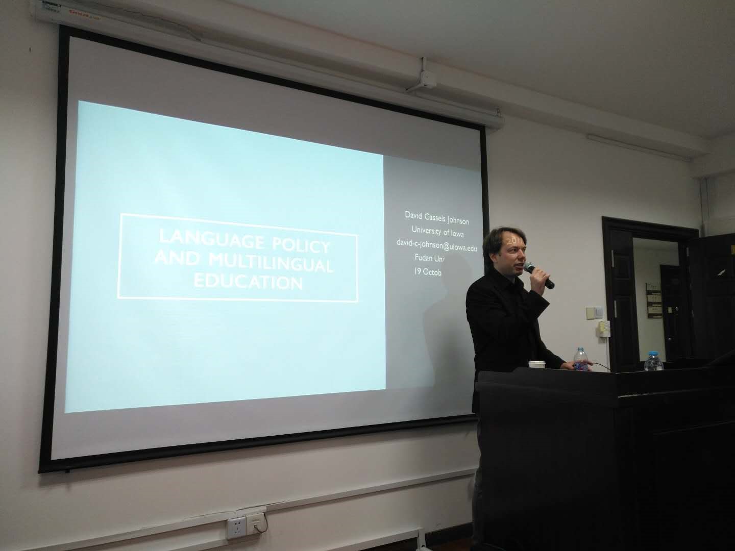 2017年10月19日,365英国上市官网在线“多语能力发展与第二外语习得研究”创新团队邀请爱荷华大学副教授David Cassels Johnson博士在文科楼543会议室做题为“语言政策与多语教育”的讲座。讲座由多语发展创新团队带头人、365英国上市官网在线郑咏滟副教授主持。会场座无虚席。