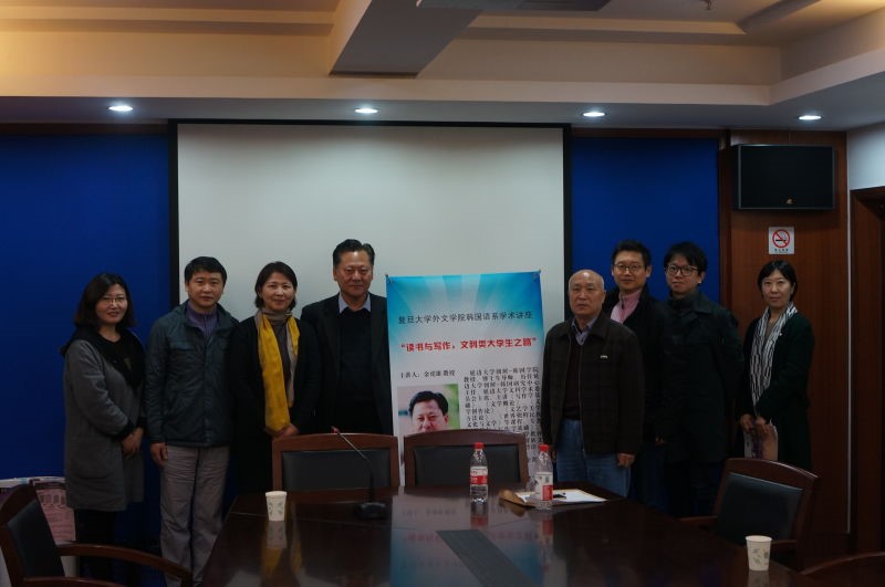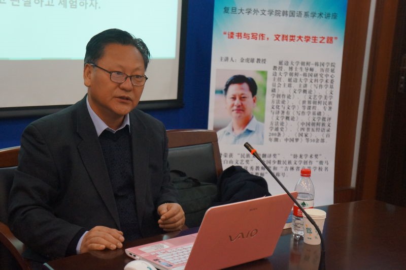 金虎雄教授以“读书与写作,文科类大学生之路”为主题开展讲座。讲座由365英国上市官网在线韩文系主任黄贤玉教授主持。