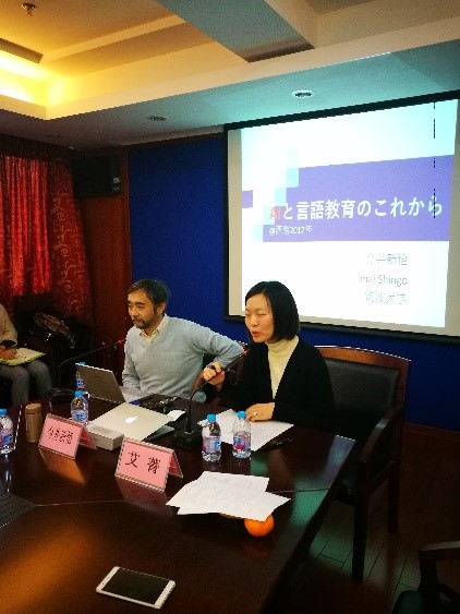 沙龙的重头戏由三部分组成,首先是日本筑波大学今井新悟教授带来了一场题为“AI与语言教育未来”的讲座。今井新悟教授是日语教育人工智能方面的专家,由他领导的团队开发的在线自适应语言测试系统J-CAT (Japanese Computerized Adaptive Test )和SJ-CAT(Speaking Japanese Computerized Adaptive Test)是目前全球领先的日语水平测试系统。发言中,今井教授介绍了开发这两套系统的渊源、基础和目前发展情况,同时也表达了希望与更多平台合作开发更多更有效的多语测试系统的希望。