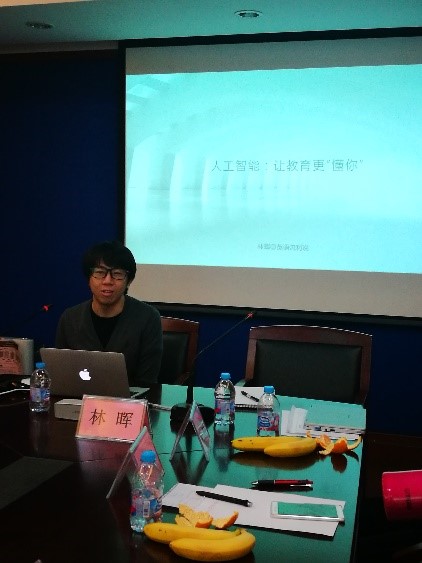 最后,“英语流利说”这一知名手机应用的联合创始人、首席科学家林晖博士为大家展示了题为“‘英语流利说’中的AI与语言习得”的报告。林晖博士的主要研究领域包括语音识别、自然语言处理、机器学习及大数据挖掘。他所领导的团队开发出世界领先的中国人在线英语测试及反馈系统,即手机应用“英语流利说”。林辉博士给大家分享了“英语流利说”的研发背景、当前状况和未来走向,介绍了其深度自适应学习系统是如何在大规模数据基础上运作的,并且也向大家说明了“英语流利说”所采用的教学理论—RHR层级递归认知理论。林博士在报告的结尾也表达了希望与外语教师和外语教育研究专家共同合作的强烈愿望。